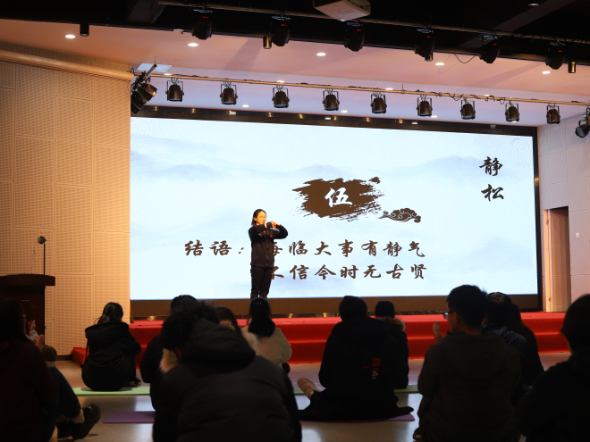 12月1日下午,动感至善之“动感课堂”第五期《刚柔并济之太极》在北区大学生活动中心F105举行。本期“动感课堂”由江南大学体育部张彤副教授担任“嗨课”主讲嘉宾,并邀请专业健身“嗨课教练”带领60名同学参与体验。活动由人文学院辅导员赵将主持。
