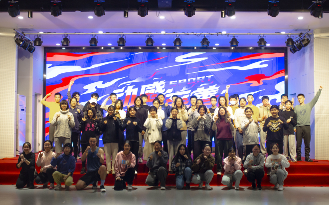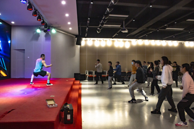 在随后的嗨课运动环节,嗨课教练周杰带来热力四射的搏击操训练。随着劲爆的音乐,同学们跟着教练左右出拳,挥洒汗水,每一个节拍都在敲打沉睡的肌肉,平日的压力与烦恼随之抛洒脑后,每位同学都绽放出全新的活力。