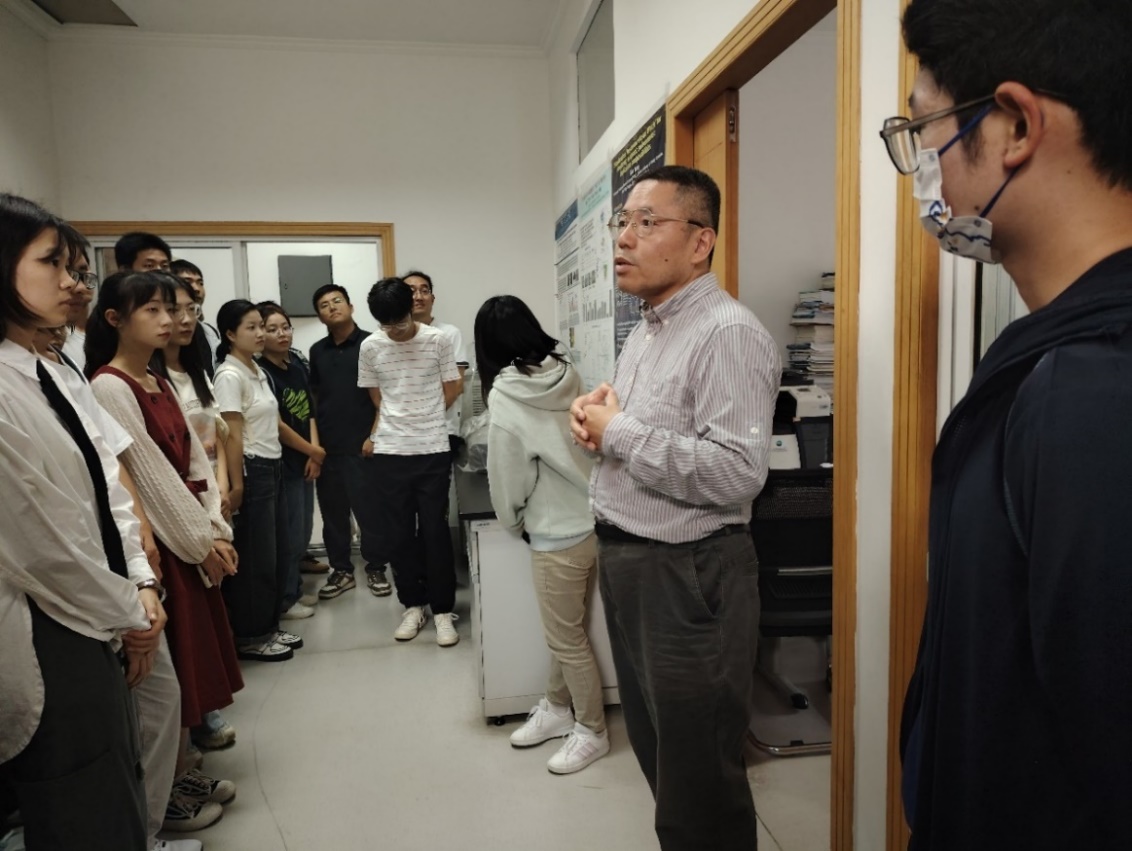 师生一行首先参观了渔业微化学实验室,重点研究领域首席科学家杨健及其团队成员分别介绍了实验室的建设情况及科研成就,展示了实验室在长江刀鲚生态表型渔业微化学鉴别技术、中华绒螯蟹产地差异性研究、“淡水贝类观察”研究体系等领域的最新研究进展。在互动环节,同学们针对利用中华绒螯蟹产地的快速辨别,河蚌的生物传感、生物富集应用等问题与团队进行了深入交流。