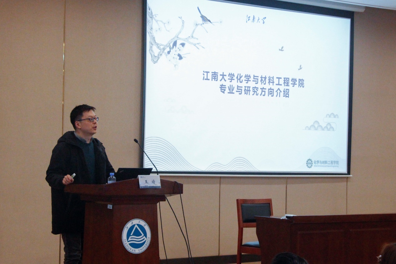王靖以具象的术语和生动的文字,向同学们展示了化学的多彩画卷。他指出,化学与材料工程学院的前身是无锡轻工业学院化学工程系,历史悠久。为了使同学们更好地了解化工学院,王靖从现实生活中的化妆品切入,通过讲解“洗护二合一的香波技术”和“遇水增强”的防晒技术为例,深入阐述了胶体化学的作用原理。接着,他又通过抗衰老、自噬、节律和微球体技术等例子详细介绍了化工在生命科学前沿和新材料等领域的多重应用。王靖的讲解以浅显易懂的语言为同学们打开了认识化工的新视角,使他们对本专业有了更加深刻的认识和了解。