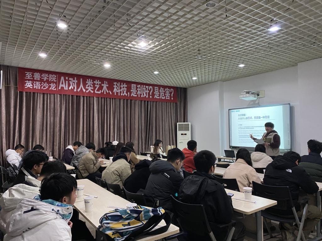 3月8日,至善学院英语沙龙在图书馆812室如期举行,主题为《AI对人类艺术,科技,是利好?是危害?》。本次沙龙活动由沈喻辰老师担任主持和讲解,并由至善学院学生会发展联络部负责组织和协调。这次活动为师生提供了一个深入探讨AI技术对人类艺术和科技发展影响的机会,有助于大家更全面地了解这一前沿话题。