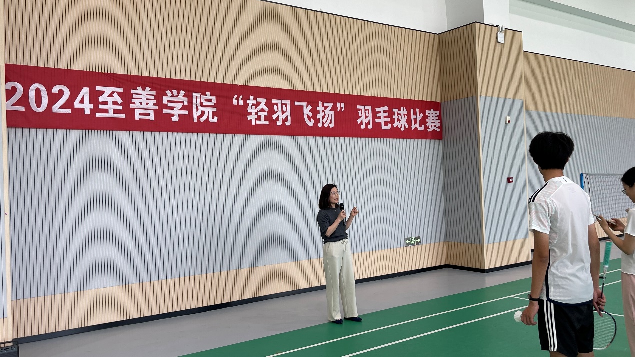 活动伊始,张慧琪在开幕式上发言,希望同学们能秉承勇攀高峰的精神和友谊第一的、比赛第二的比赛风尚,充分展示羽毛球运动积极向上、拼搏进取的体育魅力,展现至善学子身上朝气蓬勃、奋勇拼搏的精神风貌。