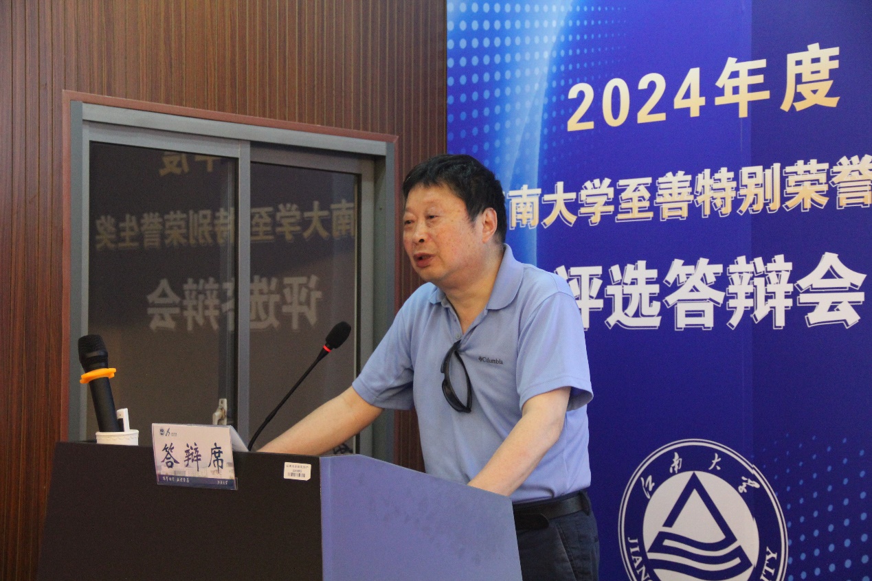 评委代表原副校长冯骉对本次评选答辩做了充分的总结与点评。他强调了至善学院的设立初衷,肯定了至善学子们为目标笃定前行的优异表现。他指出,江南大学设立至善学院是希望未来能培育出更多对社会有益的人,要同学们有长远的目光,努力奋斗不虚此生。至善学院将继续以优异的教育资源和深厚的学术底蕴,培养具有高尚品格、卓越才能和长远视野的学生,并继续引领未来更多校友走向卓越,成为兴业英才、治国栋梁,共同书写江南大学的辉煌篇章。