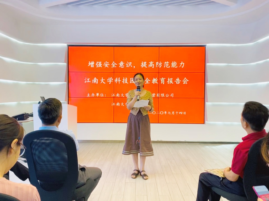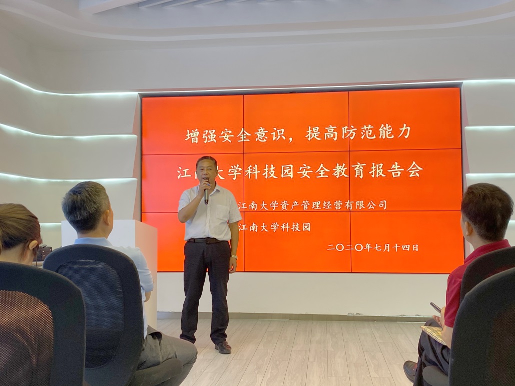 由江南大学资产公司、大学科技园共同主办的,主题为“增强安全意识 提高防范责任”安全教育报告会于7月14日下午2点在大学科技园一楼展示体验中心圆满举行。会议由大学科技园副总经理、党支部书记马火清主持,特邀无锡市应急管理局副调研员陈跃华作专题报告,资产公司党总支书记、总经理陈敏娟,资产公司下属投资企业负责人、科技园总经理殷宝良以及全体员工、滨湖区和新吴区相关企业代表等共计30余人参加了本次报告会。