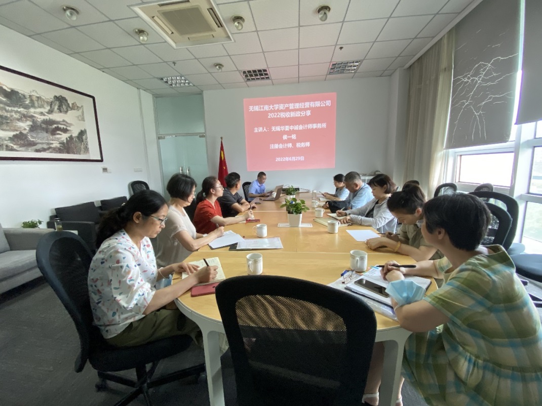 6月29日下午,资产公司在国家大学科技园六楼会议室召开下属企业税务专题培训会,邀请无锡华夏中诚会计事务所所长侯一铭对2022年上半年最新税务政策进行解读,资产公司党总支书记兼总经理陈敏娟、大学科技园总经理殷宝良、其他下属企业总经理、主办会计等一行十人参会。