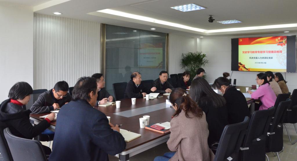 4月14日上午,人力资源处党支部在行政楼B304召开支部大会,开展党史学习教育专题学习暨廉政教育,支部全体党员参加学习,会议由支部书记雷虹主持。