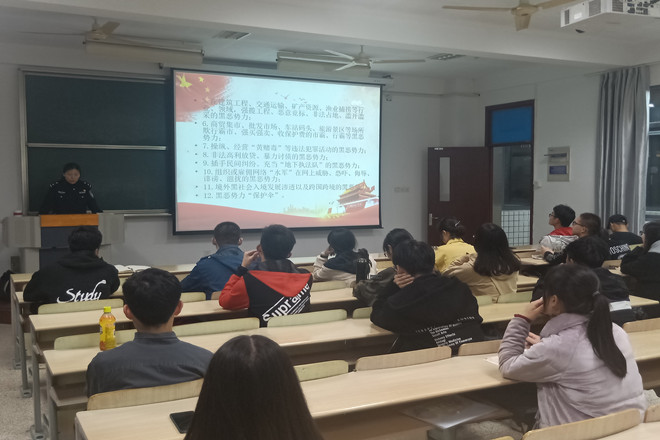按照江南大学首期安全知识教育培训课程计划,3月20日,“扫黑除恶”进校园专题讲座在第二教学楼2D202教室进行。雪浪派出所戴警官主讲,物联网学院和纺织服装学院2017级、2018级本科班级安全委员参加。