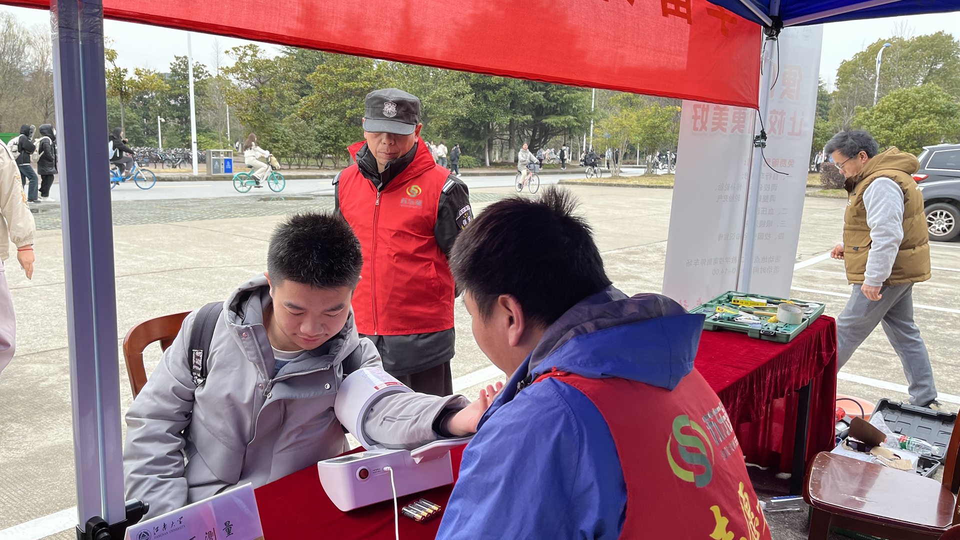 三月春风暖人心,雷锋精神伴我行。为进一步弘扬雷锋精神,致敬时代先锋,3月6日,保卫处党支部联合东吴保安江南大学项目部在第二教学楼前开展自行车维修、血压测量、眼镜清洗、校园安全知识宣传等便民服务活动。