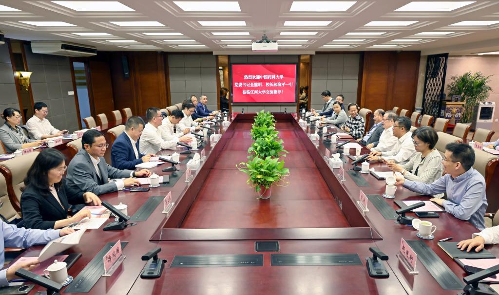 10月7日,中国药科大学党委书记金能明、校长郝海平带队,副校长姚和权、齐炼文、杨勇,校长办公室、人事处、科学技术处等负责人一行来校交流调研。校党委书记朱庆葆,校长陈卫,校党委常委、副校长顾正彪、张影陆,校长办公室、研究生院、科学技术研究院等有关部门和学院负责同志参加座谈。座谈会在行政楼B305会议室召开。会议由张影陆主持。