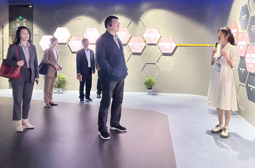 会上,双方就学校人事工作、继续教育培训两个专题展开深入的交流。会前,夏侯建兵一行实地参观了校史馆。
