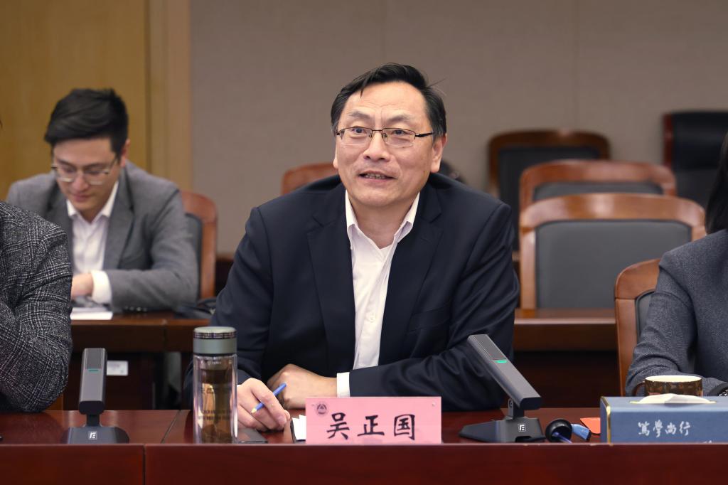吴正国对中青班江苏考察团一行的来访表示热烈欢迎,对国家教育行政学院、兄弟高校长期以来对学校的关心支持表示感谢。他表示,教育强国建设,高等教育是龙头,高校领导及管理干部,尤其是年轻干部,要牢记初心使命,争做排头兵,奋力接好高等教育发展的接力棒。他期待以此次调研座谈为契机,聚各方志、汇百家言,碰撞出更多办学治校的思想火花。希望调研团成员不吝赐教、传经送宝,继续关心支持学校建设发展,也希望与更多兄弟高校建立起深厚友谊,一同投身教育强国建设,携手答好“教育强国、高校何为”的时代答卷。
