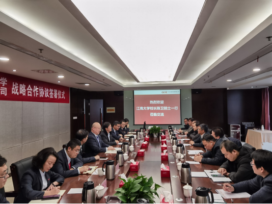 刘岱代表中科芯向陈卫校长一行表示热烈欢迎,并在展厅详细介绍了中科芯的历史沿革、人才队伍、科技创新成果、5+N协同创新平台、集成电路完整产业链体系及“十四五”规划布局。座谈会上,刘岱表示,江南大学是国家一流学科建设高校、无锡最高学府,中科芯是国家集成电路重要综合服务平台、无锡集成电路龙头企业,在“十四五”开局之年,双方达成全面、长效、深入的战略合作,是在国家、省市推动集成电路行业发展政策指引下的大势所趋;双方应紧抓机遇、合作共赢,贯彻落实国家集成电路产业自主创新战略,共同探索解决集成电路领域“卡脖子”问题。