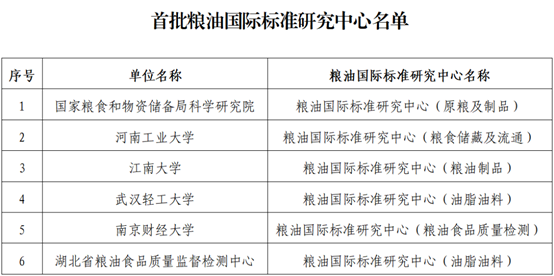 首批粮油国际标准研究中心名单截图