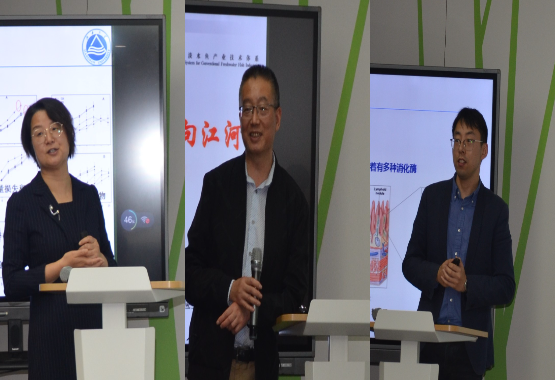 主题报告环节,食品学院姚卫蓉教授以《生鲜农产品初加工高质化技术》为主题作交流报告,从现代清洗技术、现代光谱在线品质监测技术、采后包装技术等方面,对生鲜农产品初加工技术进行了深入浅出的阐述。食品学院翟齐啸教授以《肠道微生态与生命健康》为主题作交流报告,从肠道与人体健康、肠道与肠道微生态、肠道微生态与人体健康、肠道微生态与疾病筛查诊断、肠道微生态与疾病临床治疗、肠道微生态与健康食品开发等方面,对肠道微生物相关的研究进行了详细阐述。淡水渔业研究中心朱健处长以《树立大食物观,向江河湖海要食物》为主题作交流报告,从树立和践行大食物观、向山水林田湖草要食物、水产养殖业发展进入新时代、我国渔业发展成就、淡水养殖的产业贡献等方面对大食物观和淡水渔业发展进行了详细阐述。