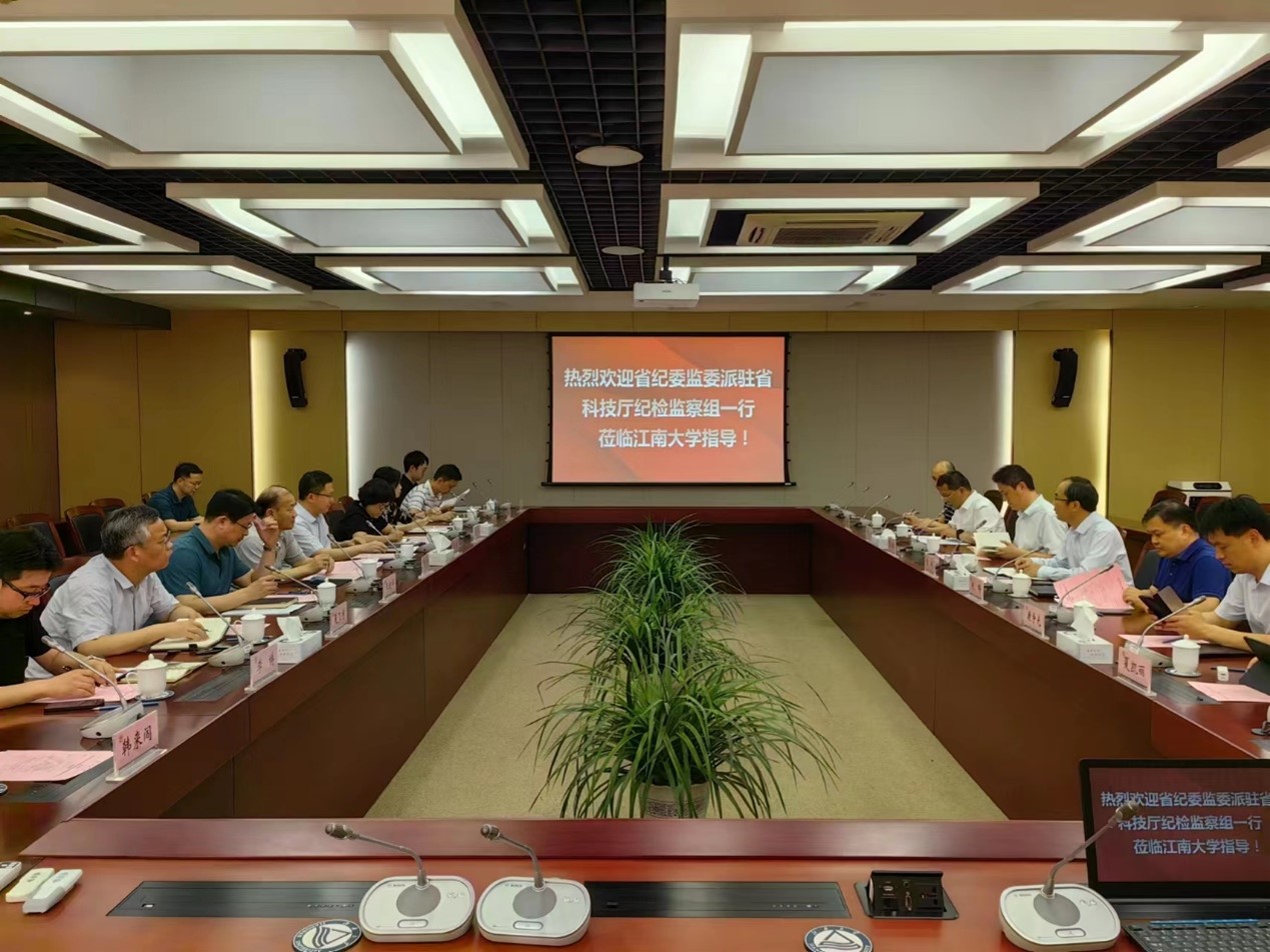 6月12日上午,江苏省纪委监委派驻江苏省科技厅纪检监察组组长张斌、副组长赵辉、江苏省科技发展战略研究院软科学中心主任康争光、无锡市科技局副局长邹建春等一行来校调研。江南大学党委常委、副校长顾正彪,科学技术研究院院长东为富,社会科学处处长王建华,监察处处长魏静,财务处处长夏飞宇,产业技术研究院、人力资源处等部门负责人及相关教师代表参加座谈。会议由东为富主持。