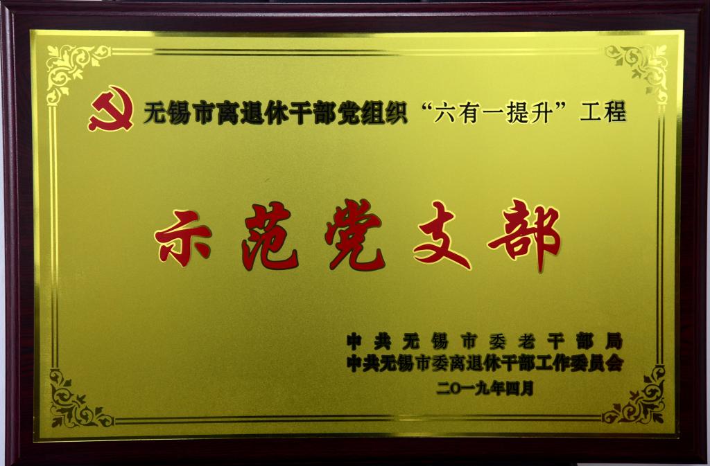 为深入贯彻落实中央和省、市党建工作要求,无锡市委组织部、老干部局、离退休干部工委在全市离退休干部党组织中组织实施“六有一提升”工程,活动中涌现出一批离退休干部党支部先进典型,经各地各单位各党支部自评申报,并通过市有关部门抽查考评、综合评估,共有28个离退休干部党支部被选树为全市离退休干部党组织 “六有一提升”工程“示范党支部”,我校为其中唯一一个学校单位。