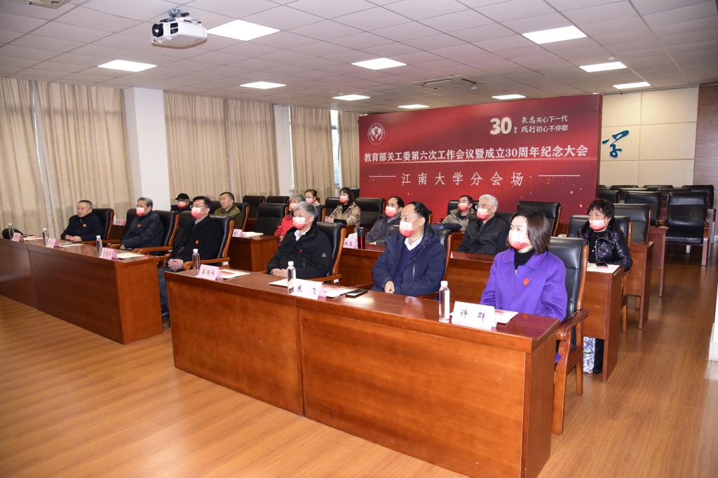 12月22日,江南大学关工委在文浩科学馆三楼会议室设立分会场,参加教育部关工委第六次工作会议暨成立30周年纪念大会视频会议,校党委副书记符惠明,党委常委、党委办公室主任朱飞,校关工委常务副主任娄国栋、副主任燕庆明,离退休党工委书记、校关工委秘书长许群,以及校关工委委员、副秘书长、各学院关工委常务副主任等20多人参加了会议。观看了大会现场播放的《纪念教育部关工委成立30周年宣传片》,学习了贵州省教育厅关工委等7家省市教育系统关工委、高校关工委等单位和个人的工作交流和经验介绍,听取了教育部关工委主任李卫红所作的《坚守初心,继往开来,为培养时代新人作贡献》工作报告,聆听了教育部党组书记、部长怀进鹏和第十届全国人大常委会副委员长、中国关工委主任顾秀莲的重要讲话。会议还表彰了关心下一代工作的先进集体和个人,江南大学荣获全国教育系统关心下一代先进集体。