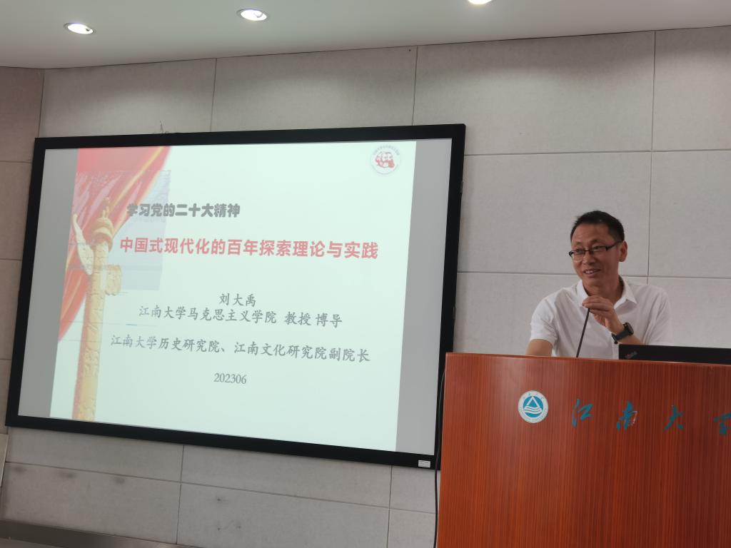 为深入学习贯彻习近平新时代中国特色社会主义思想,6月1日上午,蠡湖退休第一、第二、第三、第四党支部在田家炳楼506会议室联合举办主题教育报告会,邀请学校讲师团成员、马列主义学院刘大禹教授作“中国式现代化的百年探索理论与实践”专题报告,60余名党员现场参会。