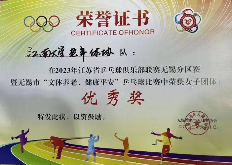 日前,江南大学老体协乒乓球队参加了在无锡鸿业毛纺有限公司乒乓球馆举行的2023年幸福江苏主题活动老年人乒乓球俱乐部联赛无锡分区赛暨无锡市"文体养老、健康平安"系列活动男女团体乒乓球比赛。我校由老体协会长姜忠平担任领队,高大康、陆伍妹分别担任男队、女队教练,共12人参加了活动,最终分别获得男子团体和女子团体优秀奖。
