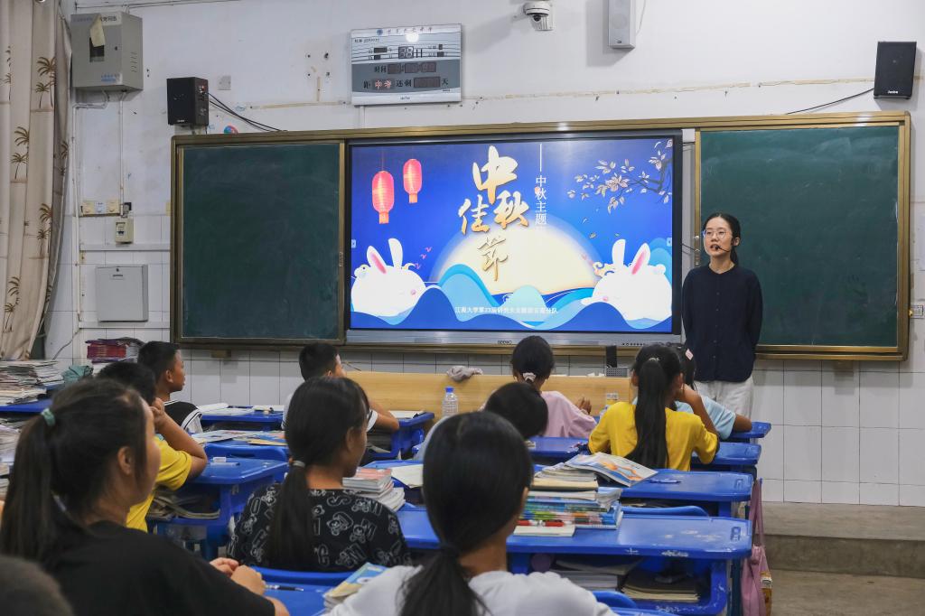 在传统中秋佳节来临之际,江南大学第23届研究生支教团云南分队给隆阳区芒宽民族中学初一的同学们带来了“庆贺神舟,喜迎中秋”主题活动。