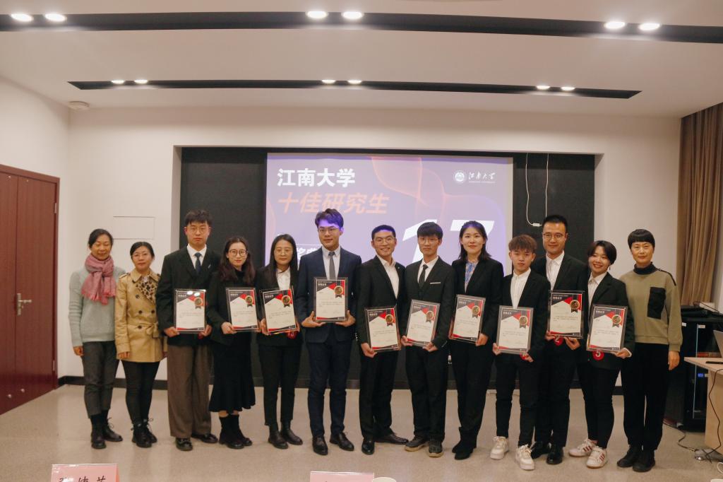 最终,通过现场评委打分和线上观众投票,食品学院蔡佳蓉、纺织科学与工程学院聂小林、机械工程学院王剑宇、物联网工程学院高爽、人文学院邵剑耀、食品学院王良哲、纺织科学与工程学院朱若斐、生物工程学院吕青兰、设计学院陈雨歌、设计学院柳迪子获得了江南大学第十七届“十佳研究生”荣誉称号。商学院随奥迪、机械工程学院陈威、物联网工程学院刘子幸、商学院刁维雪、化学与材料工程学院徐梦祎获得了江南大学第十七届“十佳研究生”提名奖。