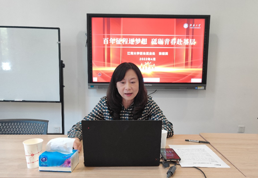 张婕英以“百年征程逐梦想,砥砺青春赴基层”为题,从一代代中国青年的使命和担当谈起,阐释了当代大学生赴基层就业的重要意义,并与同学们分享了基层就业的类型、我校学子的典型案例和职业规划方法。她强调“择己所爱、择己所长、择世所需”的生涯规划原则,讲解了选调生与普通公务员招考在报名条件、选聘程序、报录比等方面的不同,并重点解读了江苏2022年选调政策,以及名校优生定向选调和普通选调生的报名条件、选拔流程等内容。