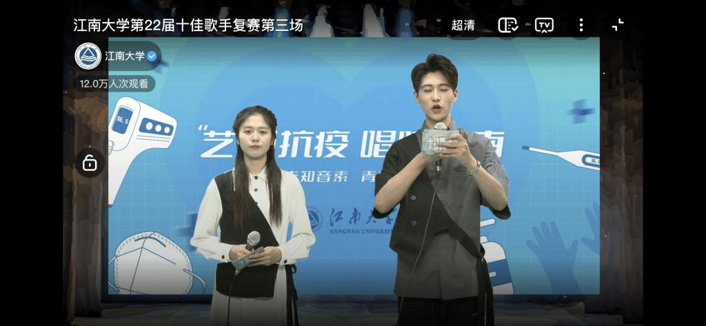 “能够参加今年校园十佳歌手比赛真的很开心!除了能和全校热爱唱歌的人相遇,更惊喜的是连我的家人和朋友都在直播间观看了我的比赛,大家的加油打气都被一个个录屏记录下来,让我特别感动。感谢学校能在线上举办这次比赛,还有超棒的融媒体直播平台和技术团队!”这是医学院的一位同学,在参加十佳歌手比赛后写下的一段话,她经过海选参加了今年江南大学校园十佳歌手复赛。因受疫情影响,今年的比赛改为以直播的方式举办,值得一提的是,三场复赛总观看超过10万人次,影响力远超往年的活动。直播比赛,不仅让所有参赛选手感受了在直播平台里参加唱歌比赛的独特体验,也让更多身处各地的江南学子,以及选手的家长、朋友们,都能够一同感受疫情下青春依旧的大学生校园文化活动热烈洋溢的氛围,并通过弹幕、评论、转发的方式为校园歌手们加油喝彩。