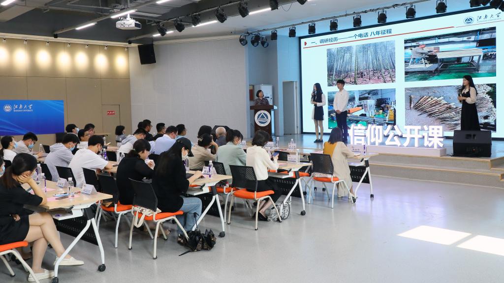 本次信仰公开课围绕“让梦想根植在希望的田野上——从脱贫攻坚到乡村振兴的奋斗路”这一主题,邀请我校戴建明、盖中辉、谢玉梅、王谡阳4名师生作为主讲人,分别从定点帮扶、深耕一线、智慧献库、青春力行等角度出发,讲述并展现了江南人在脱贫攻坚、乡村振兴以及少数民族帮扶等方面的使命与担当,同时号召我校广大师生踔厉奋发、赓续前行,为乡村振兴汇聚更多青春智慧与力量,以实际行动迎接党的二十大胜利召开。