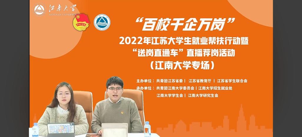 为进一步做好我校2023届应届毕业生稳就业、保就业工作,落实促进大学生就业及帮扶行动要求,保障毕业生顺利就业,12月17日,“百校千企万岗”2022年江苏大学生就业帮扶行动暨“送岗直通车”直播荐岗——江南大学冬季专场直播活动,在江南大学融媒体中心成功举办,本次活动由共青团江苏省委、江苏省教育厅、江苏省学生联合会主办,由江南大学团委、江南大学betway官方登录地址处、江南大学学生会、江南大学研究生会共同承办,活动通过线上直播、募集推送岗位以及就业精准帮扶等形式开展,并覆盖我校全体毕业生。
