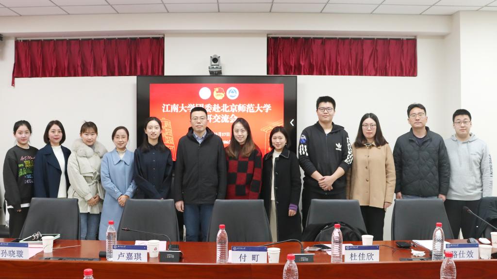 北京师范大学团委副书记卢佳琪对我校的到来表示热烈欢迎。她表示,两校都有着悠久的历史,曾多次进行合作交流,希望在未来能够继续互相学习、携手共进。魏珍吉对此次调研交流表示衷心感谢。他表示,两校有着诸多渊源和缘分,在各自校庆之际的回信更加深了两校间的情谊。他介绍了我校团委的基本情况,诚挚邀请北师大团委的师生来我校参访交流。双方参会人员就各自分管的重点工作进行了充分的沟通交流,尤其围绕思想政治引领、团学组织改革、北师大“青春讲师团”特色成果等方面交换意见。