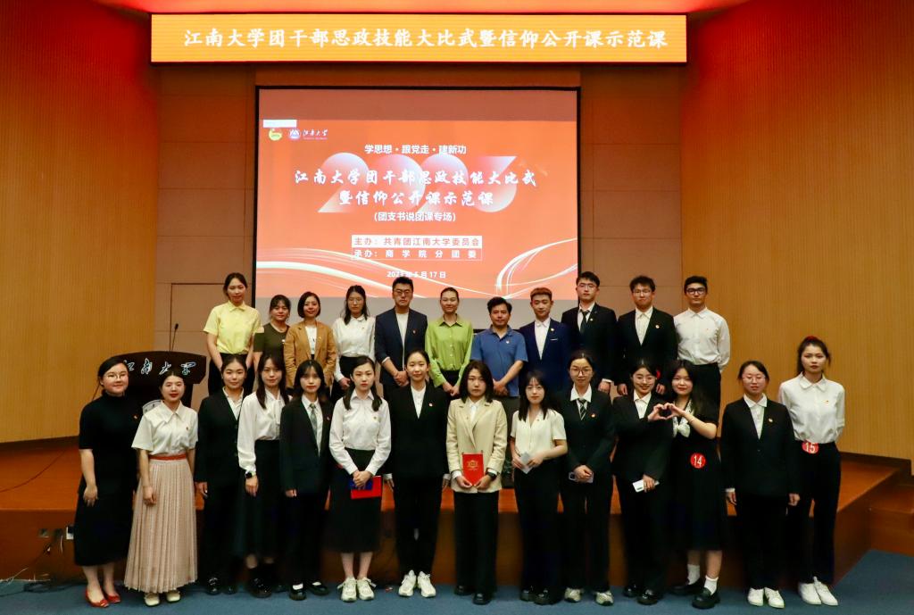 为深入贯彻落实习近平总书记在学习贯彻习近平新时代中国特色社会主义思想主题教育工作会议上的重要讲话精神,进一步聚焦思想引领主责主业,切实提升基层团支部书记能力素养,5月17日下午,由校团委主办、商学院分团委承办的“学思想、跟党走、建新功”江南大学团干部思政技能大比武暨信仰公开课示范课(团支书说团课专场)活动在远东报告厅顺利举行。校团委挂职副书记、马克思主义学院副教授孙晨光,马克思主义学院分团委副书记陈功、马克思主义学院副教授孙越、校团委组织部部长石可婧、环境与土木工程学院分团委书记周佳赟等担任评委,各学院学生代表200余人线下观摩比赛。