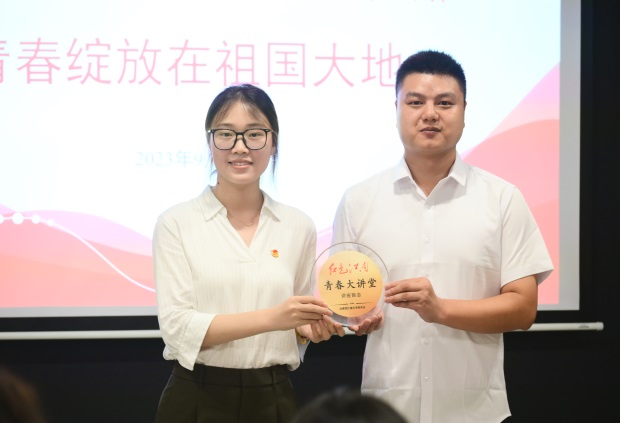 姜佳慧向杜聪授予“红色江南”青春大讲堂纪念牌