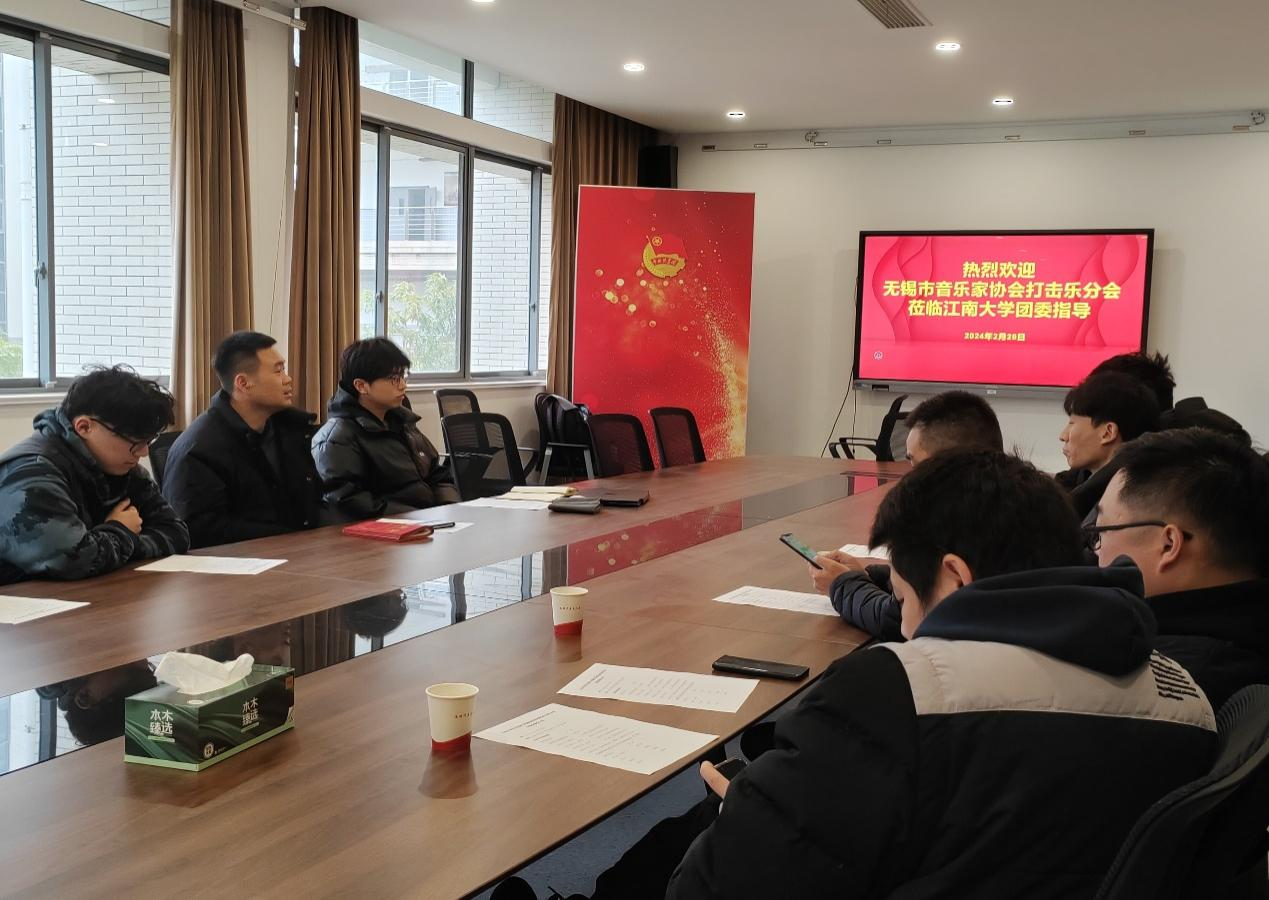 2月29日,无锡市音乐家协会打击乐分会常务副会长张祥、副会长兼秘书长林子龙一行来校与吉他社、勿氧器乐团等学生社团座谈交流,校团委副书记吴垚、社团管理部部长鲍文卓以及相关学生社团负责人参加交流会。