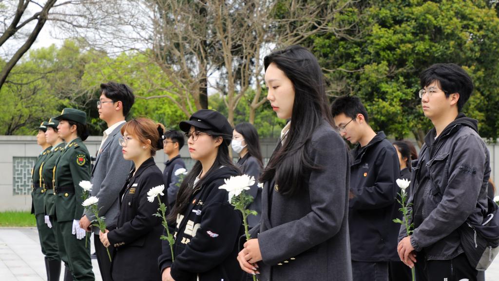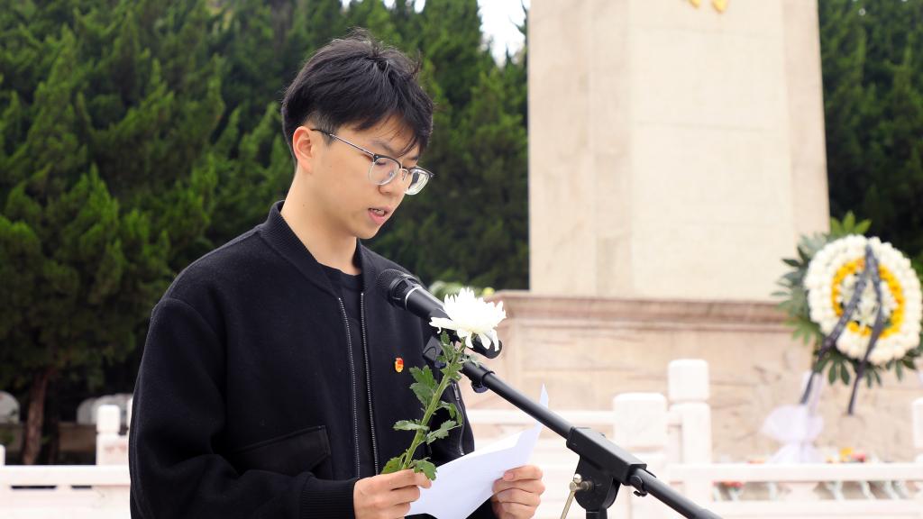 菊花朵朵寄哀思,松柏青青伴英魂。在庄严的烈士纪念碑前,全体人员肃立、向烈士默哀,敬献花圈,表达深切的缅怀和崇高的敬意。校学生会主席团成员林瀚、校青协主席团成员荣琨、国旗护卫队队员李耀代表团员青年发言,表示要弘扬革命精神,怀抱梦想、脚踏实地、勇于担当,以新时代青年昂扬向上的精神风貌和奋发有为的蓬勃朝气,为以中国式现代化全面推进中华民族伟大复兴的新征程贡献青春与力量。仪式结束后,大家自行参观陵园,体会一张张的陈旧照片,一件件的真实事迹背后的感人瞬间和伟大精神。
