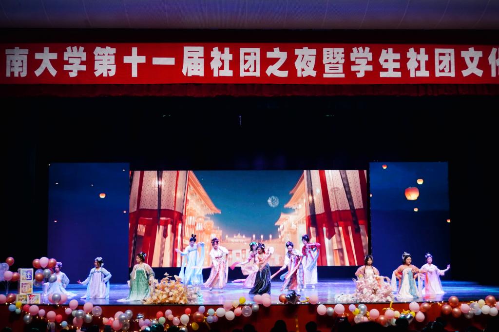 本次活动由校团委策划开展,由校团委社团管理部承办,全校60余个社团积极参与。活动以“Colorful·Youth”——多彩、青春与活力为主题,共分为调色盘奇遇、彩虹多巴胺、色彩狂想曲、幻彩八音盒四个篇章。在调色盘奇遇篇章,人文学院舞蹈系的原创舞蹈《中华奇志》闪亮开场,以红色文化和爱国主义精神激起在场观众浓浓的爱国热情;ATS音乐剧社带来欢快沸腾的音乐剧《TheGreatestShow》,用青春洋溢的音乐表达,将观众带入了活力四射的音乐海洋;吉他社的指弹《Rider》,以精湛的吉他技艺,赢得观众阵阵掌声;昭乐相声社的相声表演《一定之规》,用幽默的语言和表演,讽刺不守规则的社会现象,传递规则意识,弘扬社会正能量,让大家感受到相声艺术的魅力。在彩虹多巴胺篇章,公益互助协会带来的情景剧《纸飞机》,以感人至深的支教故事,传递了青春建功、青春无悔的青年理想和情怀;武术协会的武术表演《武之华章》,以咏春、长拳、跆拳道等武术表演,传承中华传统武术文化和博大的尚武精神;汉风社带来汉服舞蹈《四时序景》,将汉服表演与灯影、扇舞、樱花等多种元素相融合,让观众置身美轮美奂的汉服表演中,展现了大气柔美的中华汉文化;共振动漫社的舞台秀,将发光棒与动漫映像相结合,演绎的出神入化。在色彩狂想曲篇章,八谐享乐音乐社带来歌曲《StageK》《聊表心意》《命运》《给我一个理由忘记》等歌曲,表达心中所爱;勿氧器乐团RAP表演《说唱入门教学》,向观众展现了说唱新文化的动感与活力。在幻彩八音盒篇章,舞蹈协会的街舞表演《DanceNight》带来了不同形式的街舞表演,让人置身于活力十足的青春律动中;音乐剧《总有一天》由5位男生共同演绎,高中低音的立体环绕,极富情感的表达,让人仿佛置身于爱的声浪之中尤为动情;缘韵笛箫社的笛箫合奏《何以歌》将笛箫之声与传统文化融合,传递了民乐之美;青囊中医社表演的健身气功《华佗五禽戏》弘扬博大精深的中华医术和养生之道,展现了源于自然的中医魅力。活动在观众的阵阵掌声中落下帷幕。