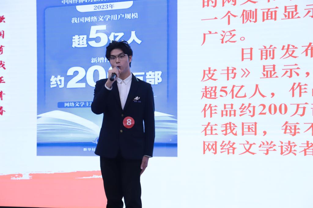 决赛阶段,参赛选手首先以战队为单位,通过朗诵、舞台秀的方式展现主持魅力。牛利坤战队带来精彩的演讲节目《我的南方与北方》,马玉尧战队以抗战为背景精彩演绎了情景剧《家国》。紧接着比赛进入正式环节,共分为即兴新闻评述和现场模拟主持两轮比赛,选手按照抽签顺序依次登场展示。大赛选题紧跟时事,聚焦大学生就业、网络现场、公共服务、传统文化传承与发展等时下青年热点话题,选手们各展所长,即兴应变,金句频出。参赛选手以赛破题,评论社会百态,抒发时代情怀,以思想和声情打动观众和评委,精彩评述引来阵阵掌声。现场模拟主持环节,参赛选手们围绕校园里大大小小的学生活动具体场景现场构思,模拟主持。比赛过程也是高潮迭起、精彩纷呈。选手们风格迥异,或幽默风趣,或端庄大方,或机智灵活,赢得了现场观众和评委的赞许。