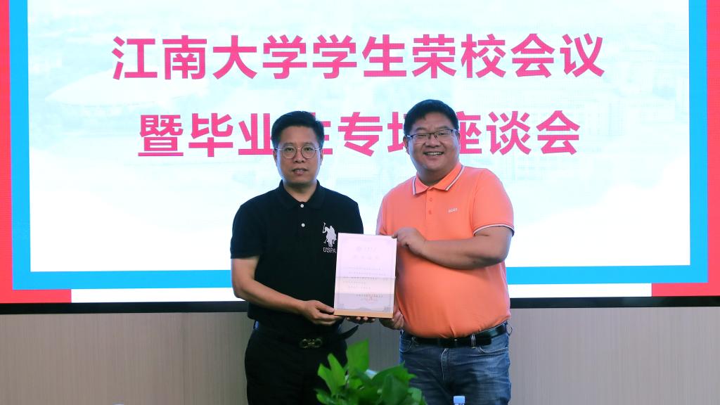 学生荣校会议暨毕业生专场座谈会体现了学校对毕业生们的高度重视和关怀,不仅听取了毕业生对母校的意见建议,也为毕业生们送上了诚挚的祝福。会议最后,向与会每一位毕业代表赠予了“天下江南人”徽章,这枚徽章不仅代表了毕业生们在江南大学的美好时光,更象征着他们将带着母校的祝福和期望,走向更广阔的世界。