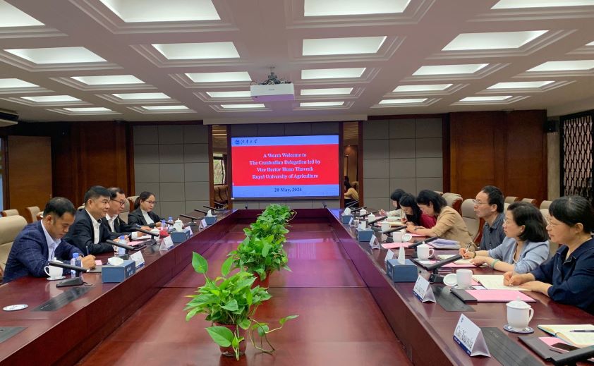 5月20日,柬埔寨皇家农业大学副校长Huon Thavrak、农业学院院长Kong Thong、国际合作办公室主任Pinn Thira、农业学院研究员Ly Phanna一行4人来访我校。校党委常委、副校长堵国成会见来访人员,并参加交流会。食品学院党委书记傅莉莉、国际交流合作处处长倪晔、副处长蔡建英等相关人员参加了交流会,会议由蔡建英主持。