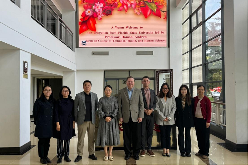 10月31日上午,美国佛罗里达州立大学教育、健康与人文科学学院院长Damon Andrew教授、副院长JoshuaNewman、副教授HanhanXue等一行来访我校。国际交流合作处副处长蔡建英,食品学院教授周鹏、刘小鸣,人文学院院长助理蔡慧英等参加了座谈交流。会议由蔡建英主持。