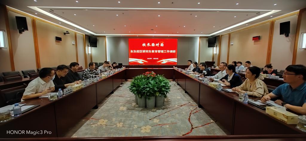 5月26日,倪松涛副校长一行前往东氿校区开展“校长面对面——东氿校区研究生教育管理工作调研”。党委研究生工作部部长、研究生院院长吴小俊,副部(院)长陈周,副院长潘如如,学生工作部(处)副部(处)长俞立峰以及相关科室主任陪同调研。宜兴研究生院管理办公室主任杨延、副主任赵莹以及校区办管理人员、辅导员、学生代表参加了交流座谈。