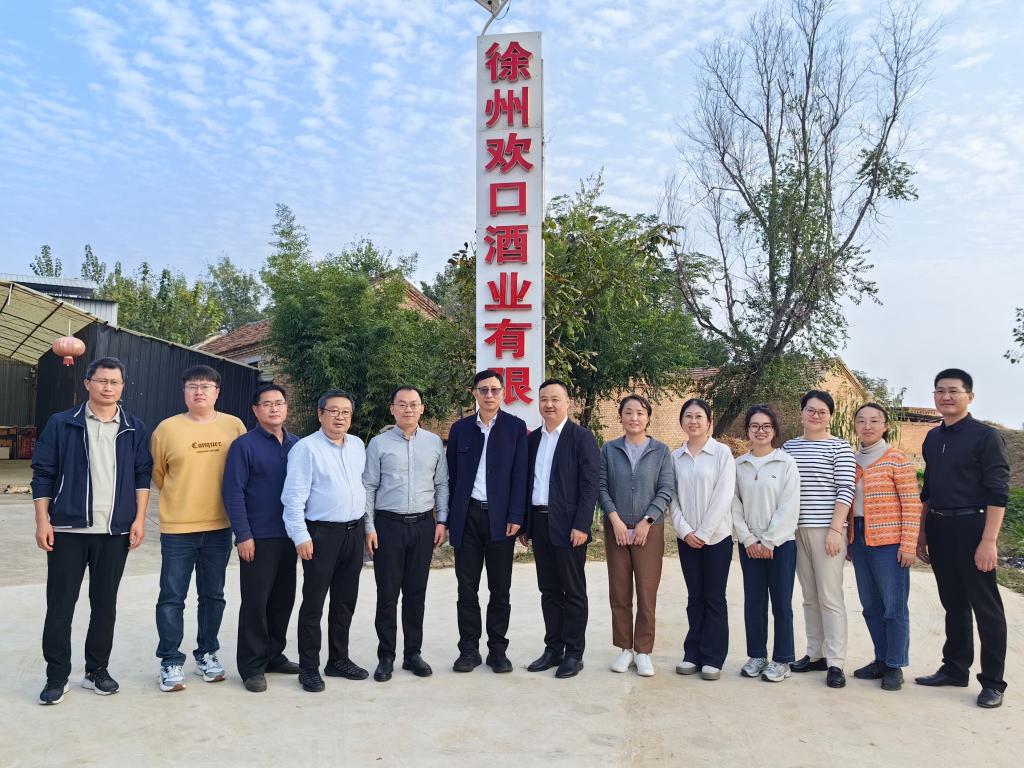 方正泉、高雪梅一行首先来到欢口镇江苏佑邦金属科技有限公司,对该公司的生产流程、产品检测、机械设备等进行了实地考察,并就建立校地技术合作、开展人员培训等进行了初步接洽;接着,到访人员一行来到欢口酒业有限公司,实地参观了欢口酒酿造、储藏、包装等生产环节,生物工程学院范文来教授从工艺改进、质量控制、品牌营销等方面进行了全面指导,助力欢口酒这一徐州市非物质文化遗产存续发展;最后,到访人员一行来到欢口镇肖桥村,为冯亚东老师送上了慰问金和鲜花,听取了他对肖桥村基本情况介绍和已开展工作情况的汇报,方正泉、高雪梅对他服务乡村振兴战略、扎根基层一线开展工作表示肯定,勉励他利用此次援派机会勤学多思、历练本领,同时表示学校和学院将多方位支持他做好乡村振兴帮促工作。