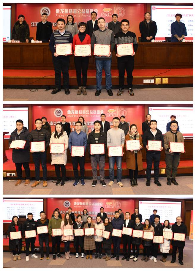 自2011年开始,益海嘉里集团在江南大学设立了“金龙鱼奖学金”“金龙鱼助学金”和“金龙鱼青年教师奖”,每年资助我校在教学、科研和学习方面表现优异、做出突出贡献的教师和研究生,至今已连续设立8年,累计捐赠资金470余万元,先后有487名研究生、25名青年教师获得此项奖励和资助,鼓舞着一批又一批江南人牢记科学精神,在各自的研究和开发领域建功立业。