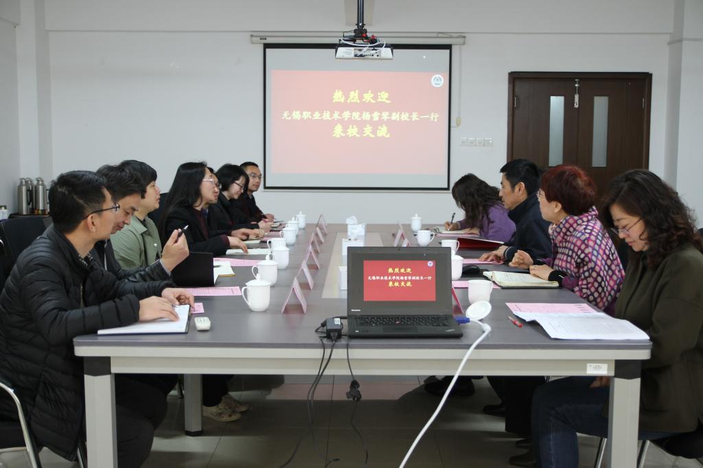 3月18日上午,无锡职业技术学院副校长杨雪琴、党委宣传部部长刘文平、学生工作部(处)部(处)长徐悦、团委书记赵健等一行7人来我校就团学工作、宣传工作进行调研,我校党委副书记戴月波、学生工作部(处)部(处)长张菁燕、团委书记王维、党委宣传部副部长王冰等接待了来访人员并进行了座谈交流。