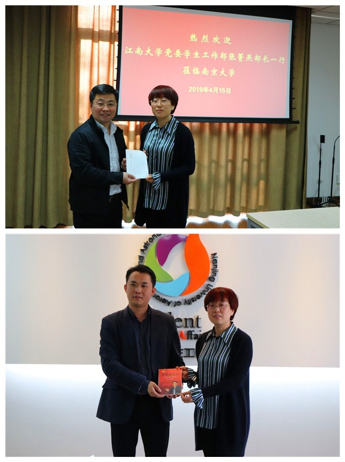 4月15日,校学生工作部部长张菁燕、副部长汪双喜带领部门相关科室成员分别前往南京大学和南京航空航天大学开展调研。南京大学学生工作部部长龚跃、南京航空航天大学学生工作部部长侍旭及相关负责同志分别热情接待调研团一行。
