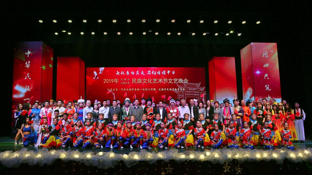 为庆祝新中国成立70周年,推进无锡市民族团结事业发展,加强各民族交流交往交融,强化“五个认同”,江南大学联合无锡市委统战部、民宗局共同举办的“七秩赓传薪火,石榴情耀中华”无锡市、江南大学民族文化艺术节在江南大学成功举办。