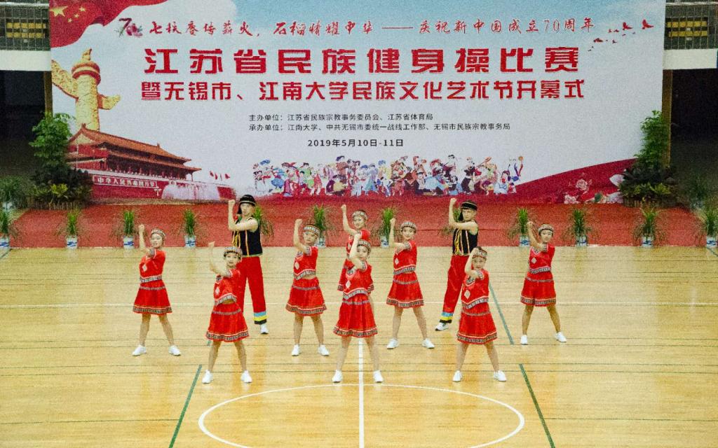5月11日上午,无锡市、江南大学民族文化艺术节在江南大学体育馆正式开幕,相关领导出席了开幕式,并宣布江苏省民族健身操比赛开赛。作为此次民族文化艺术节的重要组成部分,江苏省民族健身操由省民宗委、省体育局主办,江南大学承办。来自南京、无锡、常州、苏州、南通、淮安、扬州、镇江市8个城市的9支代表队参加了比赛。经过两天的激烈角逐,南京第一代表队获得一等奖,苏州、南通、常州代表队获得二等奖,镇江、扬州、南京第二代表队获得三等奖。