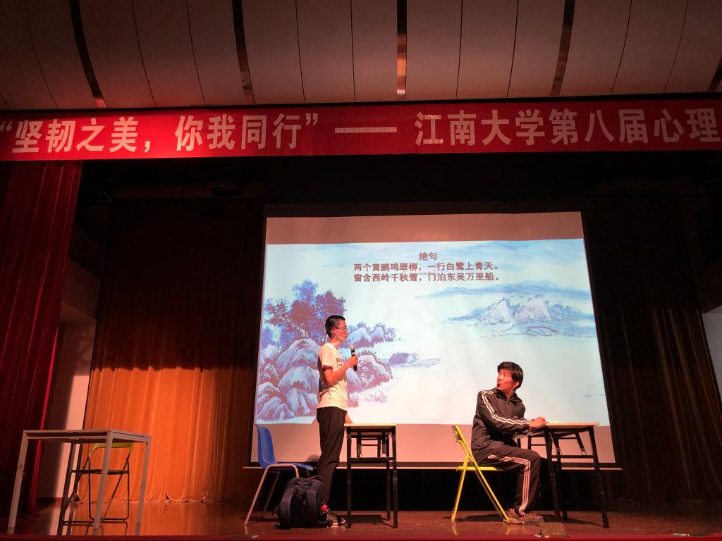 5月15日晚,由学生工作处主办、人文学院及法学院承办的江南大学第八届心理剧大赛在南区大学生活动中心成功举办,学生工作处副处长单筱婷,心理中心教师万伟、童玉梅,法学院分团委书记胡博、辅导员冯亚东,人文学院分团委副书记范增良、辅导员张慧等出席了本次活动。各学院学生代表近400余人观看比赛。