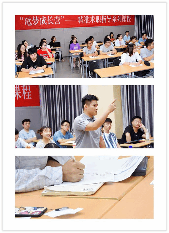 “面试中的逻辑思维能力”“情景面试问答、小组模拟面试与技能性面试”“行业现状分析与发展前景”“求职经验与从业心得分享”等内容,3名来自世界500强企业且有多年HR综合管理经验的老师,为同学们提供了宏观政策分析、中观行业前瞻与微观个人剖析相结合,理论宣讲、简历撰写与实战演练相结合,综合市场观察与专业行业分析相结合的详尽指导,同学们均表示受益匪浅。苏同学说:“当时只是抱着试一试的态度参加的,但是整个课程下来,让我对未来职业规划、面试过程、专业学习有了全新的了解,对如何准备简历、如何准备面试、如何成功应对HR们的问题都有了底儿,感谢学校为我们组织了这样有意义的课程。”王同学说:“三个星期的课程对我而言绝对是收获颇丰的,授课老师都是企业正在从事相关工作的资深前辈,他们所抛出的问题、从事的行业都深深触及到了我的兴趣点,精心策划的课堂活动与情景模拟环节,补充了大学就业指导课程的不足,这也恰恰是我们最感兴趣的内容。”