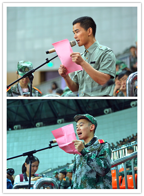 动员大会在嘹亮的国歌声中拉开序幕,同学们身着迷彩,英姿飒爽。外国语学院辅导员苗文建作为带训教师代表发言,他强调了军训的重要性,希望同学们通过军训收获成长;教育学类1902班冯东枫作为参训学生代表发言,他表示会听从指挥,认真学习,表达了完成本次军训任务的坚定决心。