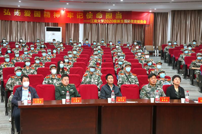 10月21日下午,无锡军分区政委常新生大校在我校北区的大学生活动中心作了《亚丁湾护航——不一样的军旅人生》的国防教育报告。无锡军分区动员处处长蔡志龙上校、滨湖区人民武装部政委王颐然上校、校党委副书记戴月波、校人民武装部部长张菁燕等军地领导及2020级部分军训学生聆听了报告。